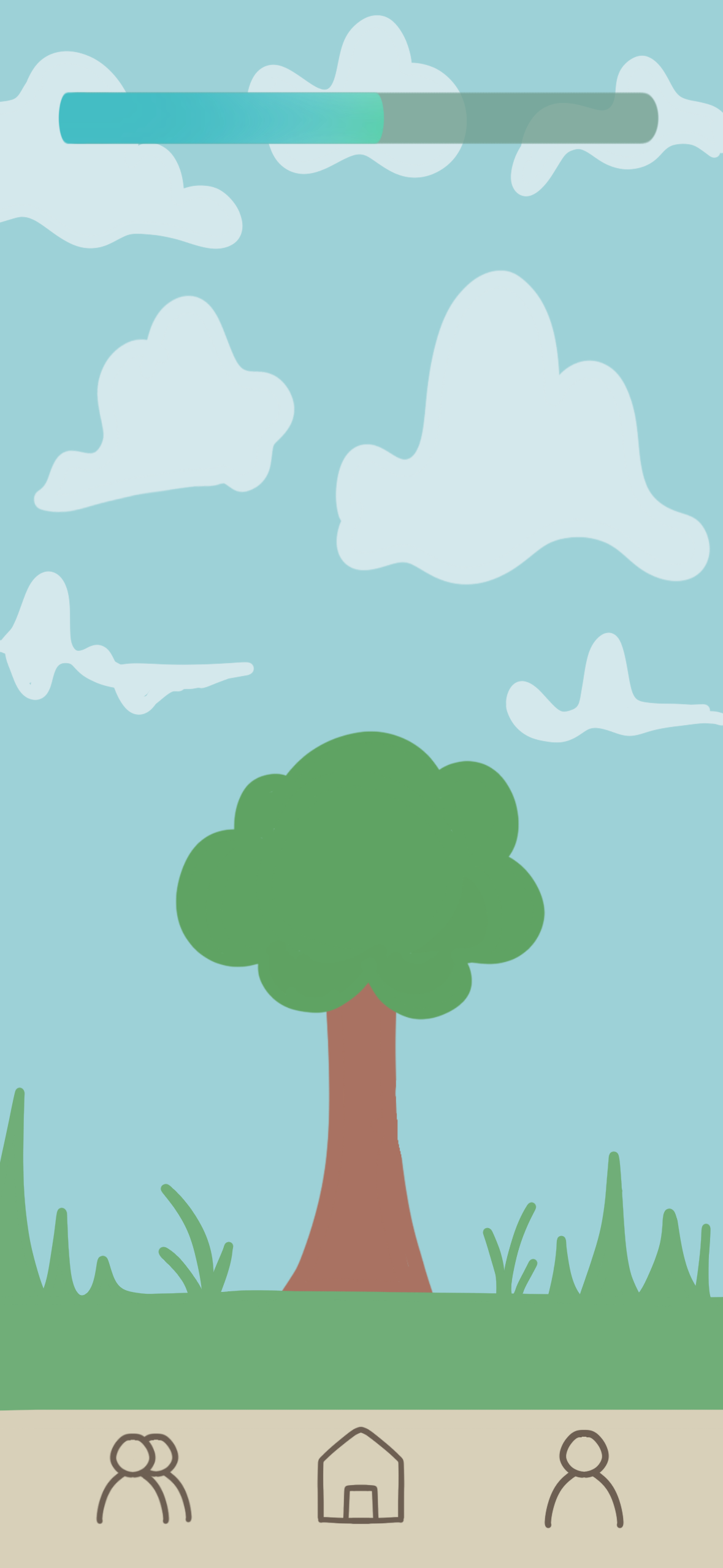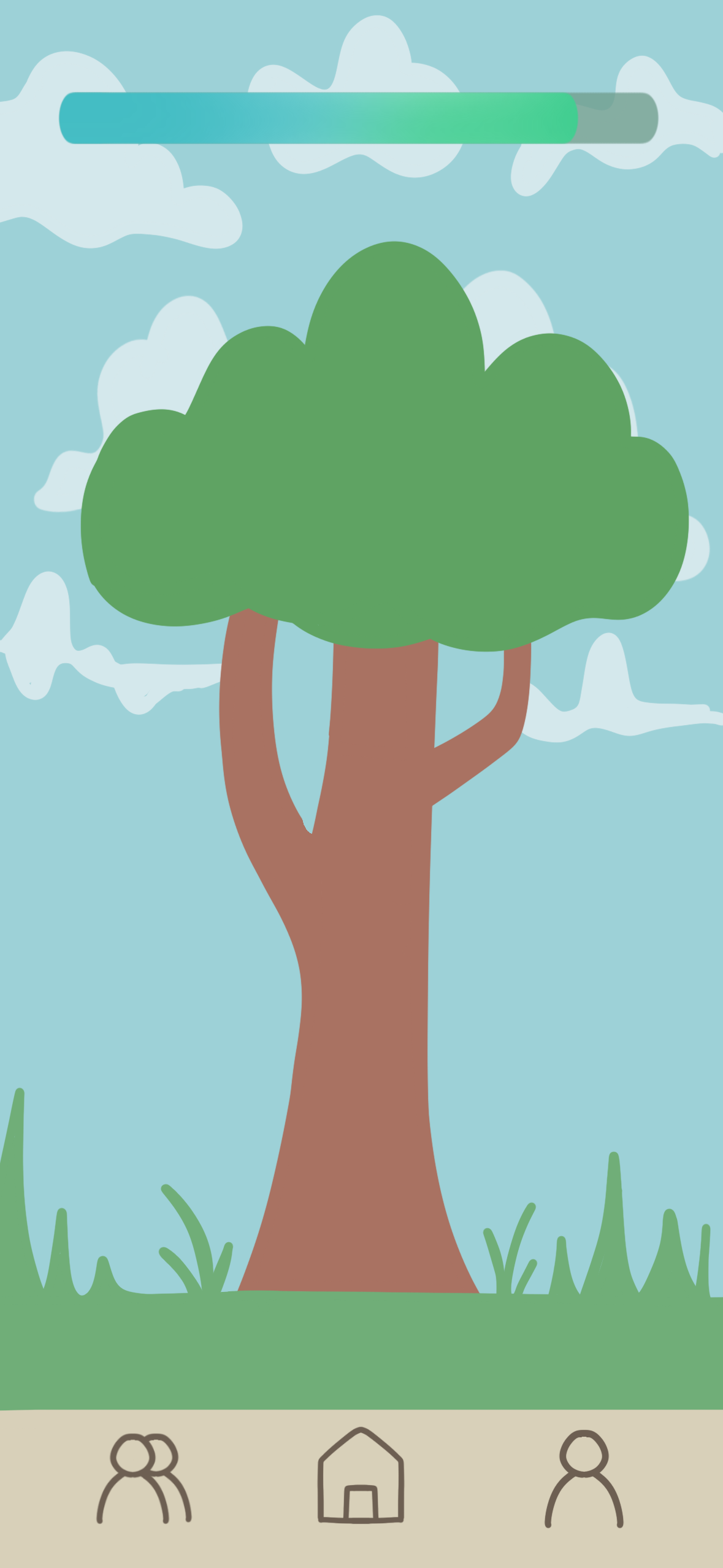 To gamify progress, the user completes goals related to socializing. These goals are depicted as part of roots of a tree.